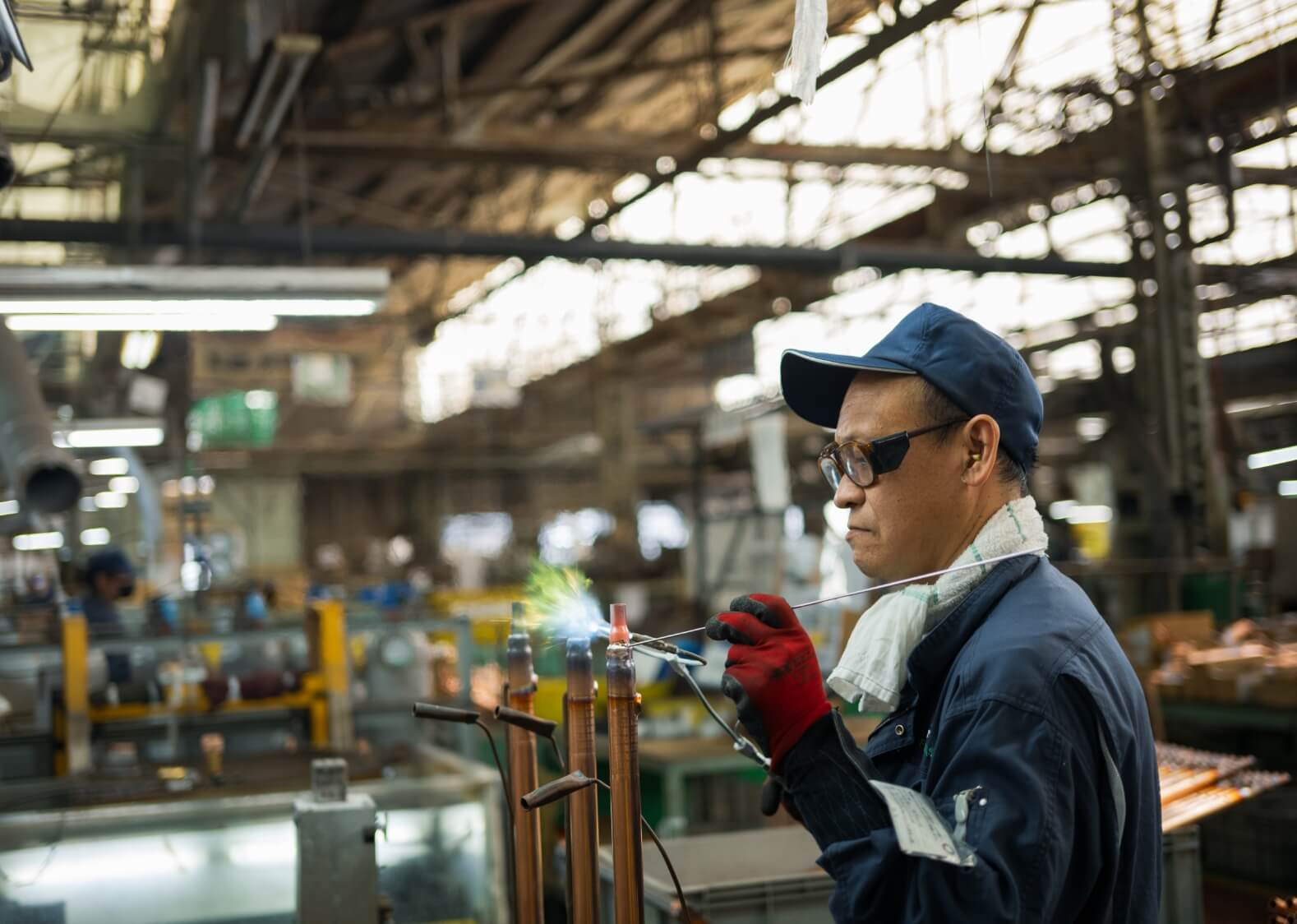 暮らしの中で欠かすことのできない空調機器及び冷凍機・住宅設備機器用配管加工・自動車用配管加工。私たちは長年培ってきた高度な技術を武器に、お客様のご要望にお応えする配管加工のプロフェッショナル集団です。さまざまな物や人々に触れ、人と日本、豊かな未来をつなげています。